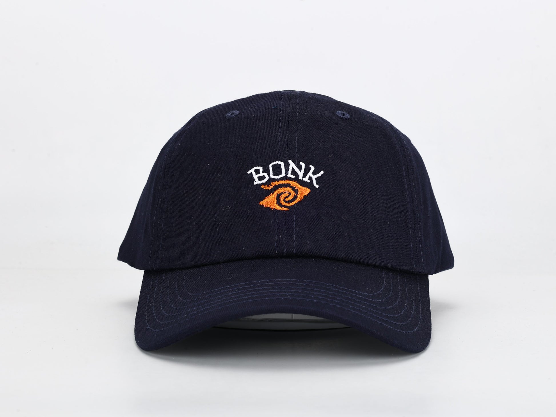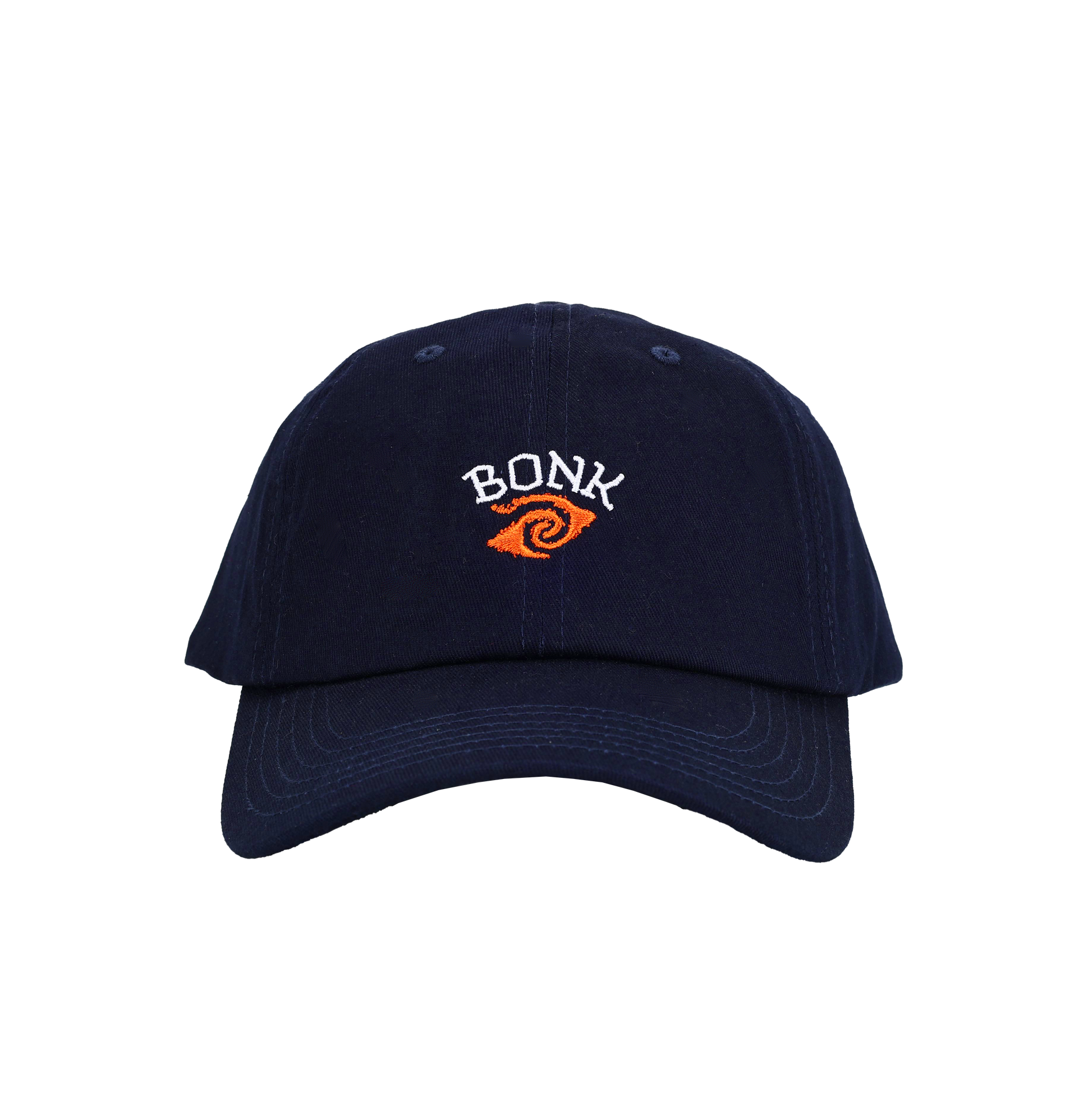 A classic 6-panel cap with a twist—this navy blue headpiece is more than just a hat; it's a portal. Featuring the Bonk Vision logo embroidered on the crown, this piece bends reality just enough to keep things interesting.
