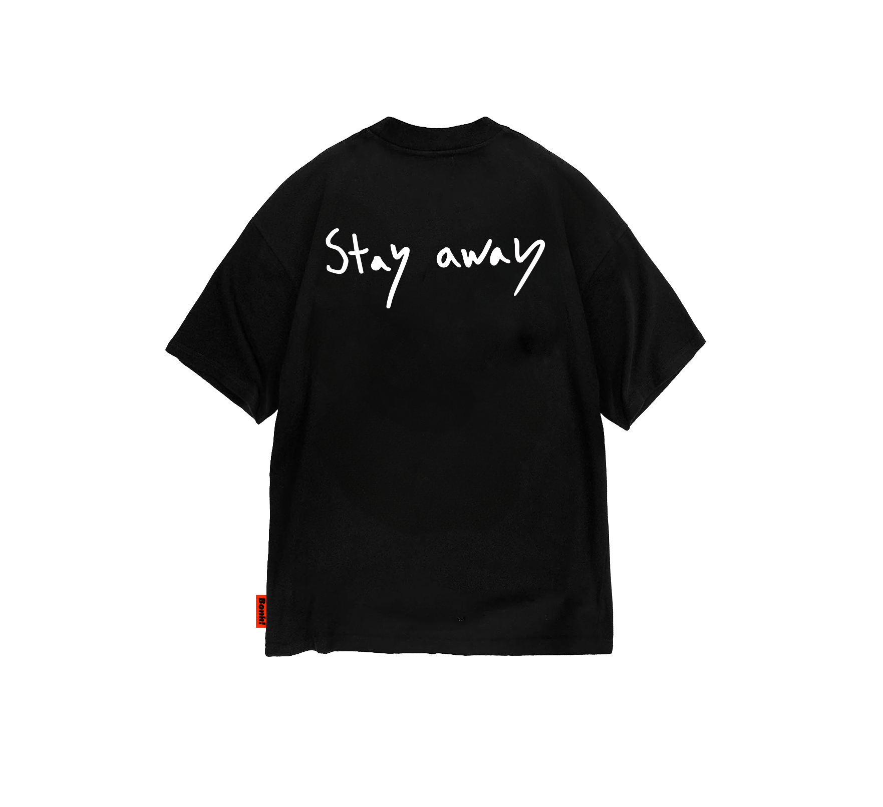 Edge with intent. A unique hand-drawn Bonk skull anchors the front. Across the back, “Stay Away” scrawled in raw, handwritten style. Printed in white on a black 300 GSM cotton base and finished with our red accent hem tag. Built for the spooky season and every day after.