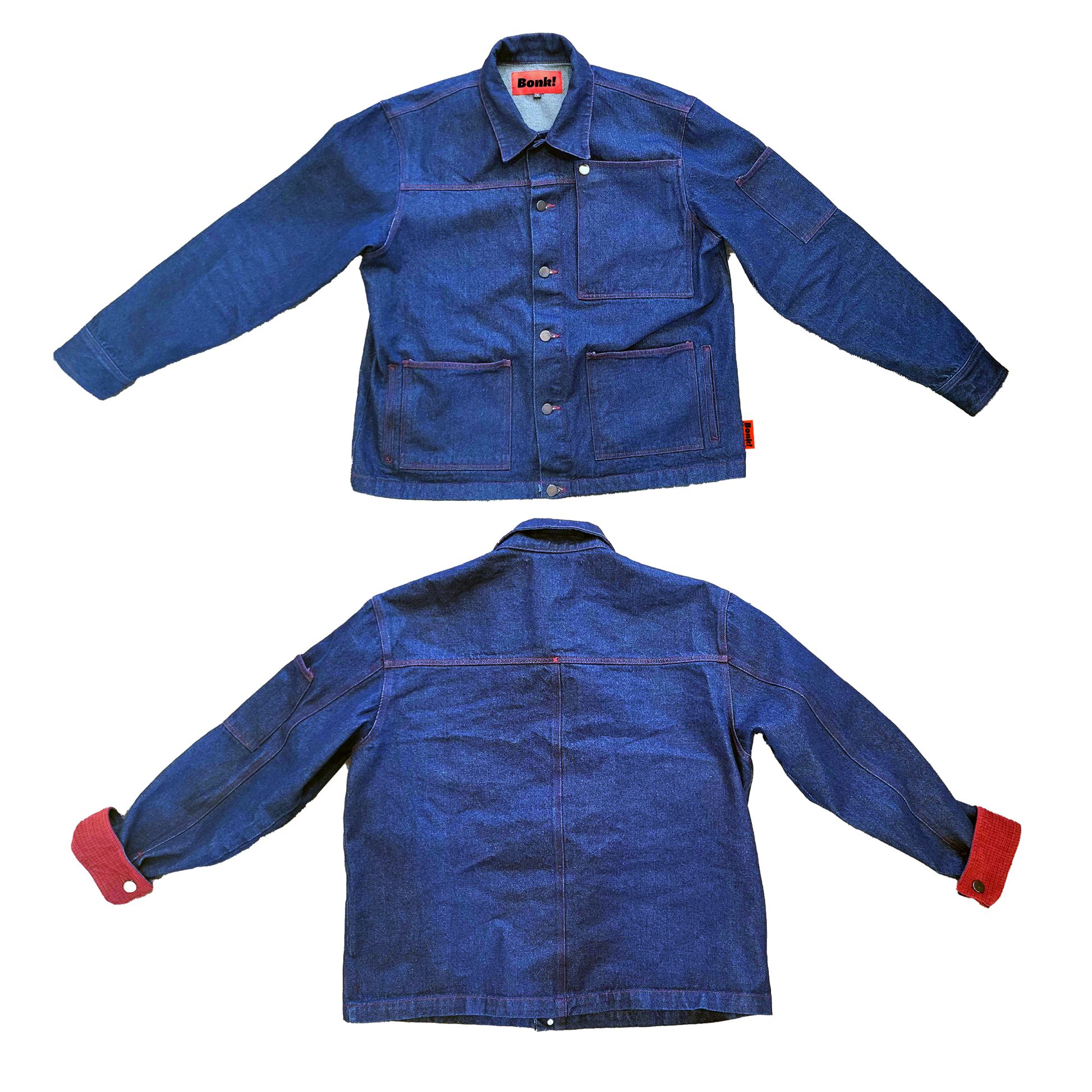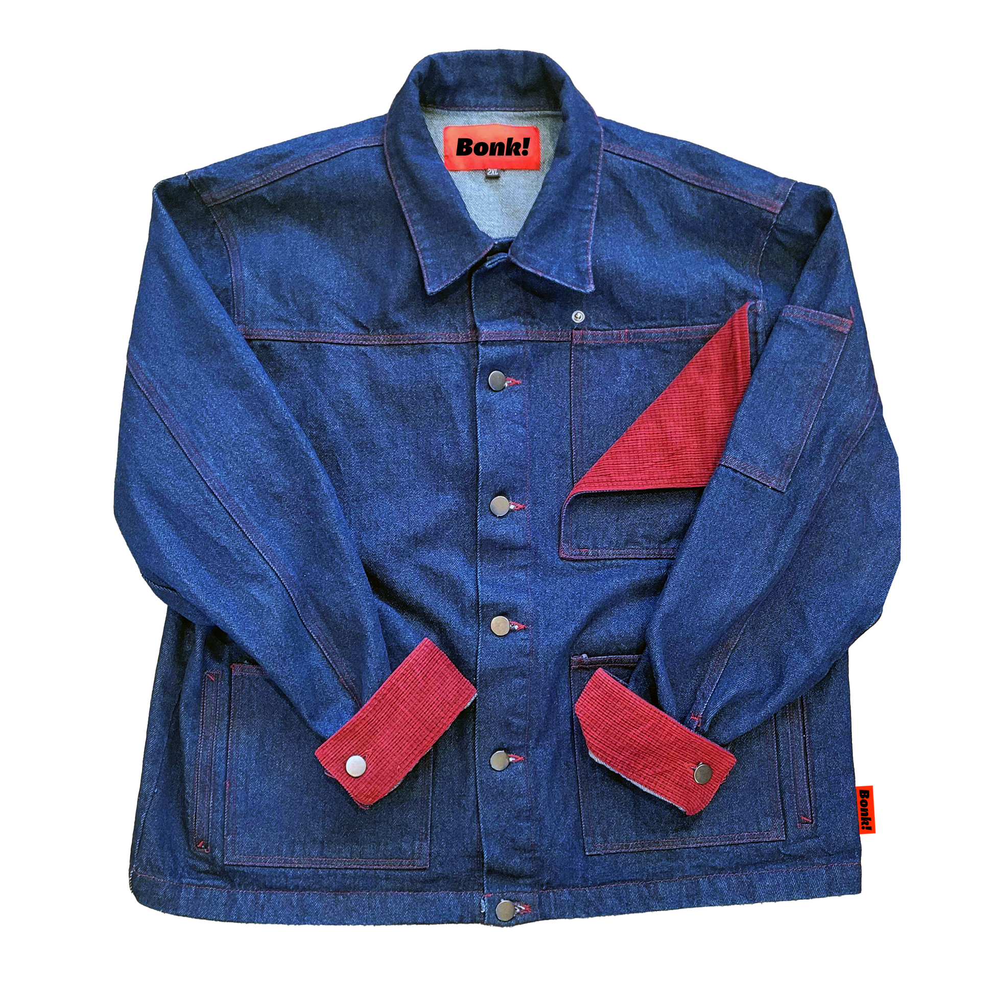 Embody hardworking grit and city wit with the Dapper Denim Utility Jacket. Made from 13.2 oz deep indigo denim, it holds enough pockets to stow your phone, your pen, and probably all your whims, too. Topped off with a magnetic pocket square and maroon stitching, it’s an artful salute to rebellion and refinement—odd is the new classic, indeed.