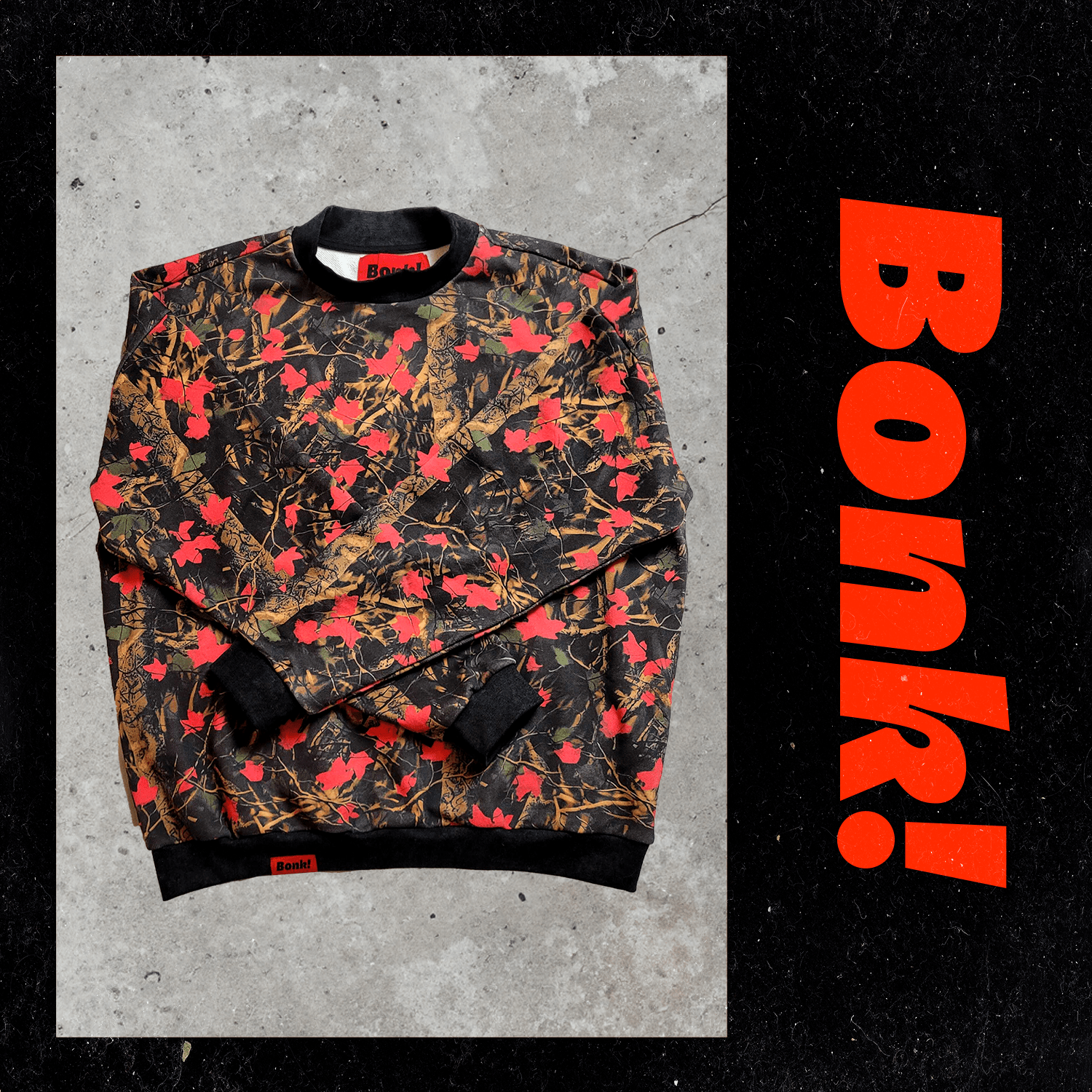 Immerse yourself in the allure of the evening with our 'Midnight Fall' Camo Sweatshirt. This piece is more than just a garment; it's a declaration of style, crafted from substantial 500gsm cotton for enduring comfort and warmth. Adorned with a unique Bonk camo print and accented with artfully faded black cuffs, this sweatshirt exudes a timeless, vintage charm. Designed to be your go-to statement item for every season, it ensures you'll capture attention wherever you go. Embrace the distinctive appeal and make your mark in any setting with Bonk!